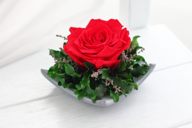 Как флористам удается создавать бессмертные растения? Мнение о том, что неувядающие розы являются искусственными, ошибочно. Вечные розы изготовлены из натурального, живого растения. За процедурой среза следует этап стабилизации розы, обеспечивающий ее долговечность. Стабилизированная роза - это живой цветок, обработанный специальным глицериновым составом, существенно замедляющим процессы регенерации. Такой прием позволяет продлить срок свежести растения и сохранить первозданный вид цветка на протяжении нескольких лет.